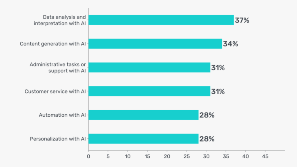 CHART: Areas of AI skills and knowledge in marketing . Credit: GetApp @2024